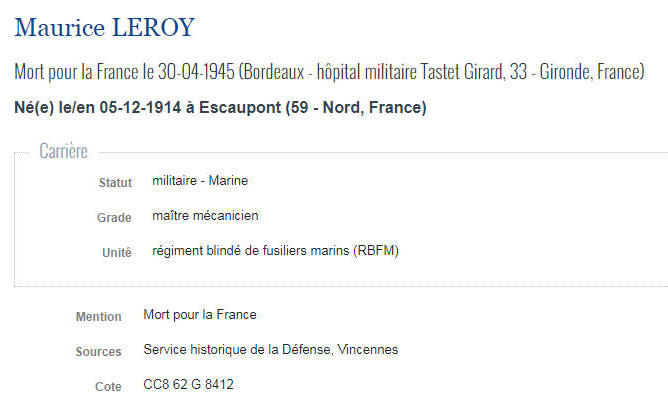 ESCAUTPONT (Nord) - Décédé le 30 avril 1945 à l'hôpital militaire