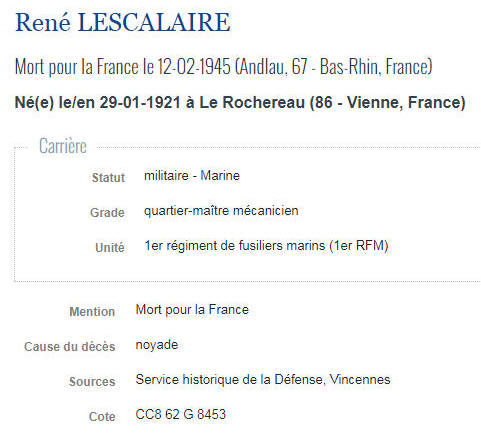 Né le 29 janvier 1921 à LE ROCHEREAU (Vienne) - Décédé