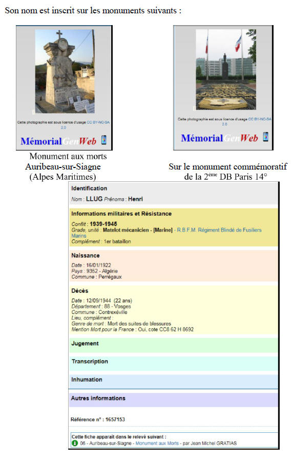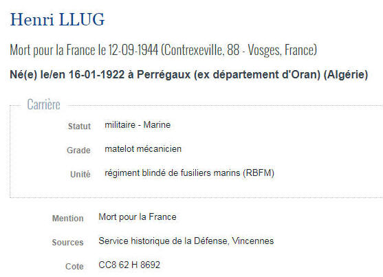 PERREGAUX (Algérie) - Décédé le 12 septembre 1944 à CONTREXEVILLE