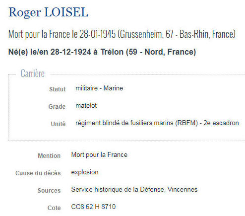 à TRELON (Nord) - Décédé le 28 janvier 1945 à GRUSSENHEIM (Bas-Rhin)