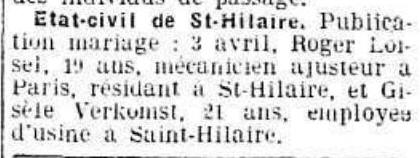 du HARCOUET (Manche) le 17 avril 1944 avec Gisèle Marcelle VERKOMST