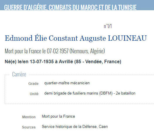 AVRILLE (Vendée) - Décédé le 7 février 1957 à NEMOURS