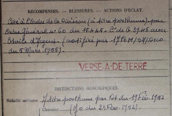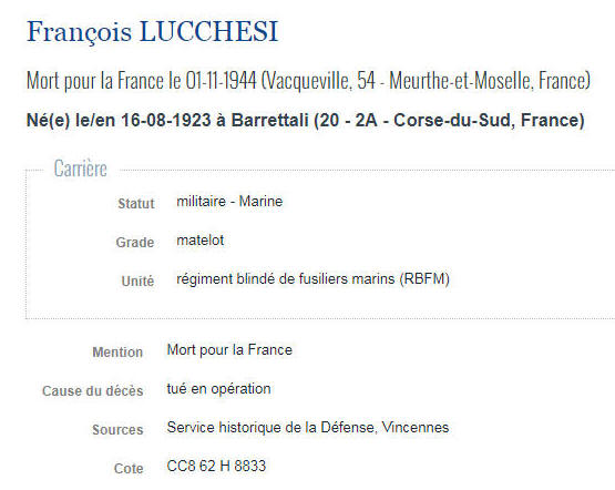 BARRETTALI (Corse) - Décédé le 1er novembre 1944 à VACQUEVILLE
