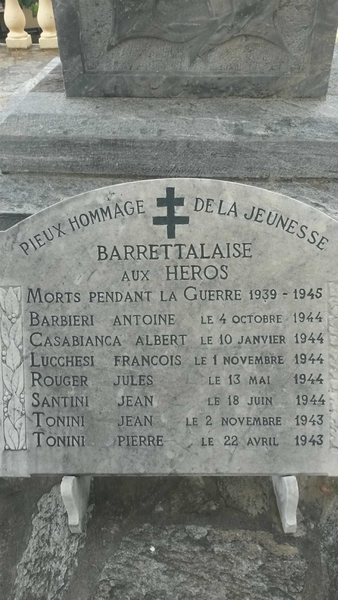 Mentionné au monument aux morts de Barretali