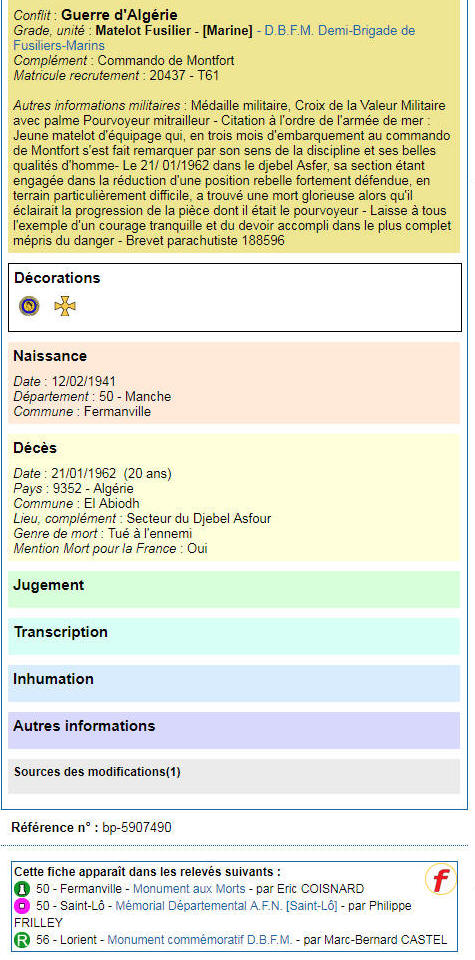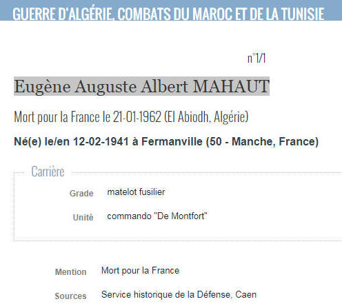 FERMANVILLE (Manche) - Décédé le 21 janvier 1962 à EL ABIODH