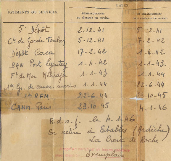 et radié des contrôles de l'armée le 4 janvier 1946