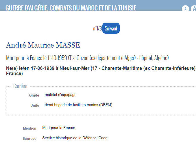NIEUL sur MER (Charente Maritime) - Décédé le 11 octobre 1959 à TIZI