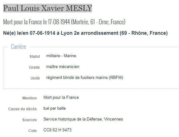 LYON IIe (Rhône) - Décédé le 17 août 1944 à MORTREE (Orne)