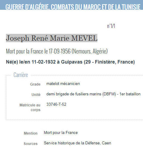 GUIPAVAS (Finistère) - Décédé le 17 septembre 1956 à NEMOURS