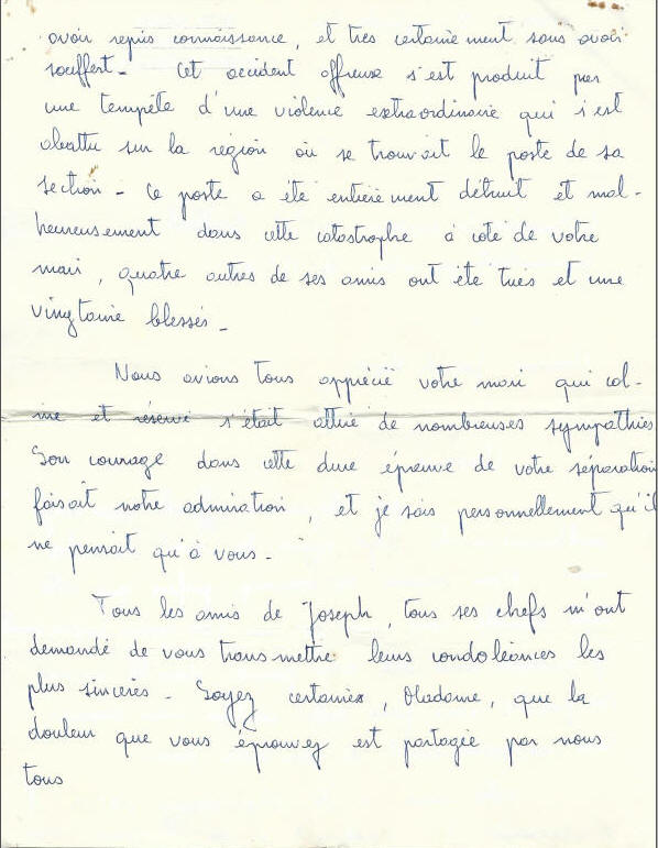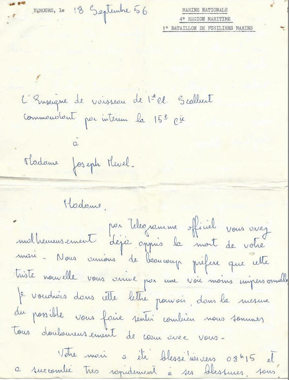 Lettre annonçant son décès à la famille