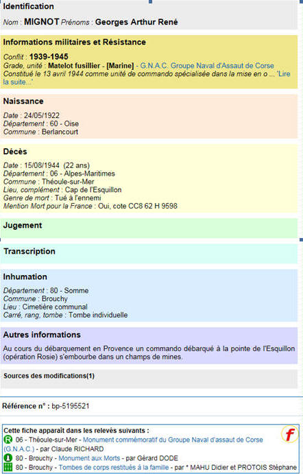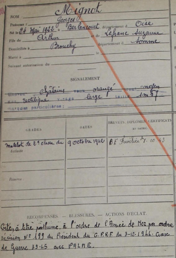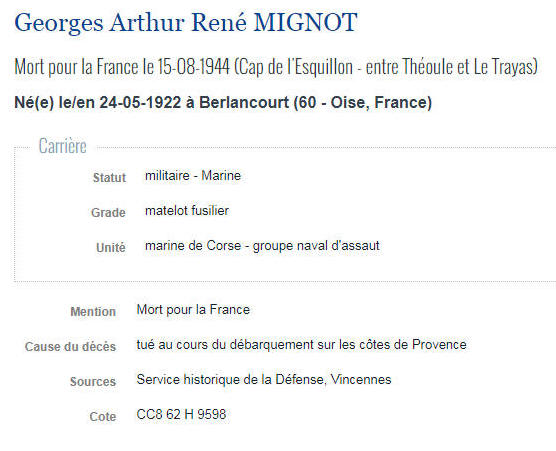 BERLANCOURT (Oise) - Décédé le 15 août 1944 au Cap de l'Esquillon,