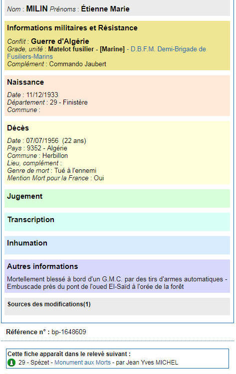 Mentionné au monument aux morts AFN de Pleyben (Finistère)