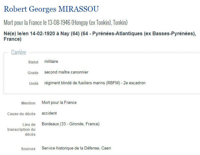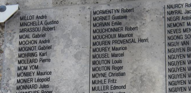 Mentionné sur le mémorial des guerres en Indochine à Fréjus (Var)