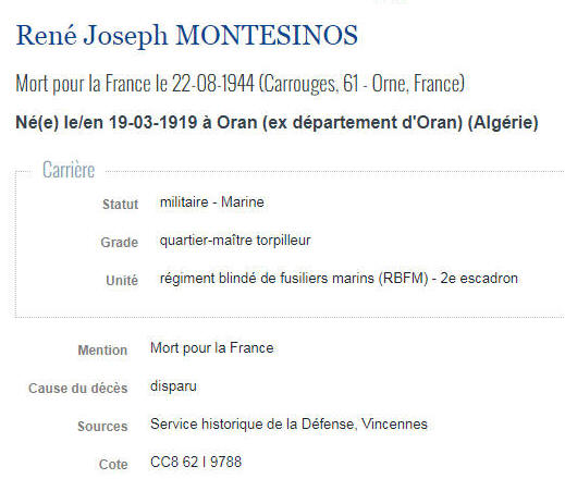 ORAN (Algérie) - Décédé le 22 août 1944 à CARROUGES