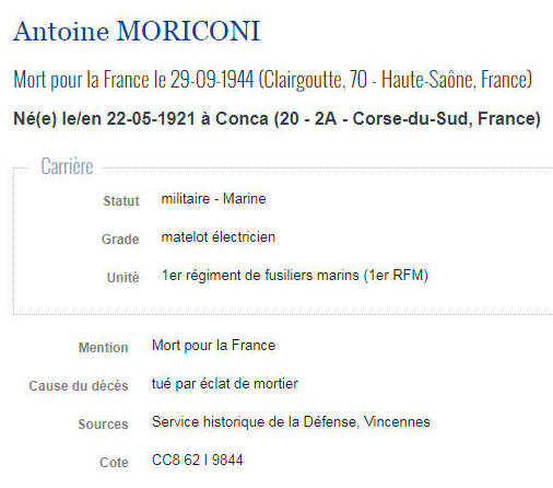 Né le 22 mai 1921 à CONCA (Corse du sud) - Décédé le 29 septembre