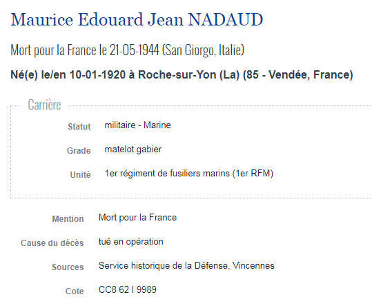 des morts du 1er RFM, blessé mortellement le matin du 22 mai 1944