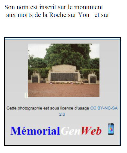 Né le 10 janvier 1920 à La ROCHE sur YON (Vendée) - Décédé le 21 mai