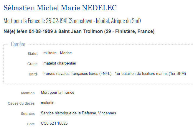 Né le 4 août 1909 à SAINT JEAN TROLIMON (Finistère) - Décédé le 26