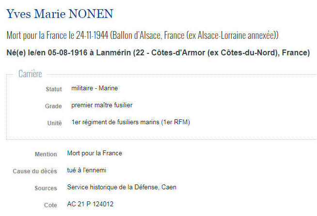 Né le 5 août 1916 à LANMERIN (Côtes d'Armor) - Décédé le 24 novembre