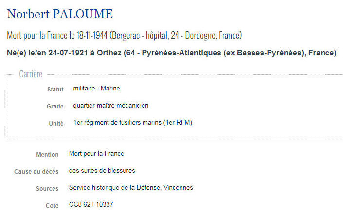Né le 24 juillet 1921 à ORTHEZ (Pyrénées Atlantiques) - Décédé le 18