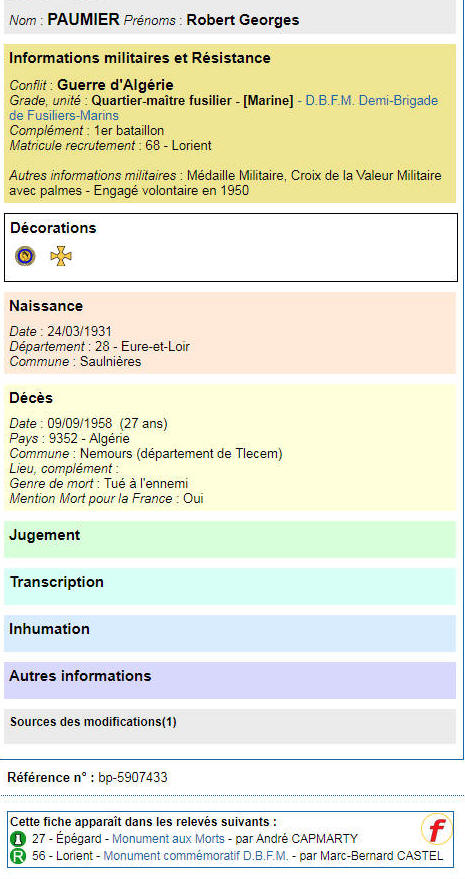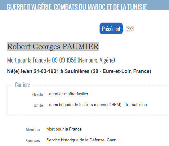 SAULNIERES (Eure et Loir) - Décédé le 9 septembre 1958 à NEMOURS