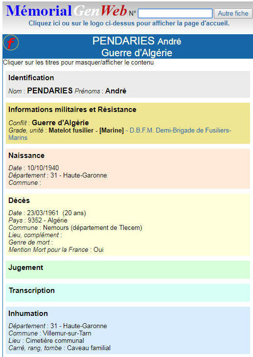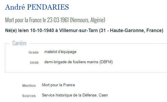 VILLEMUR sur TARN (Haute Garonne) - Décédé le 23 mars 1961 à NEMOURS