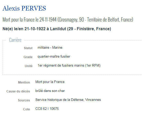 Né le 21 octobre 1922 à LANILDUT (Finistère) - Décédé le 24 novembre