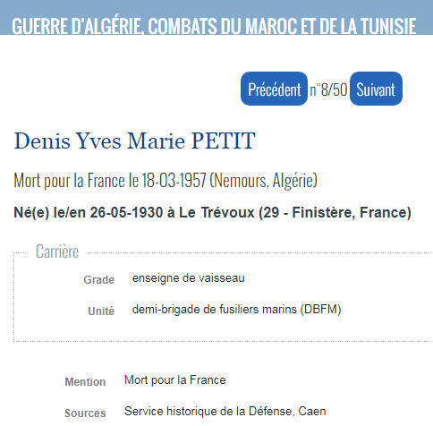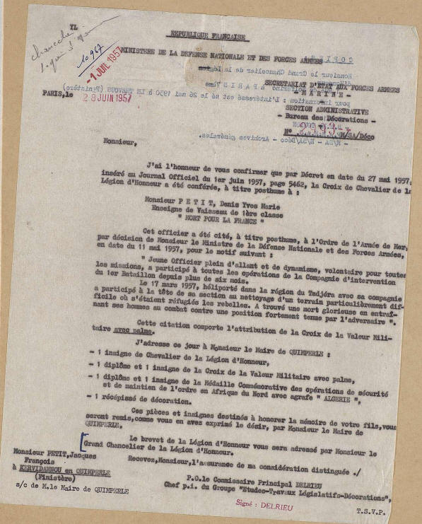 ministérielle du 11 mai 1957, l'enseigne de vaisseau Petit a reçu la