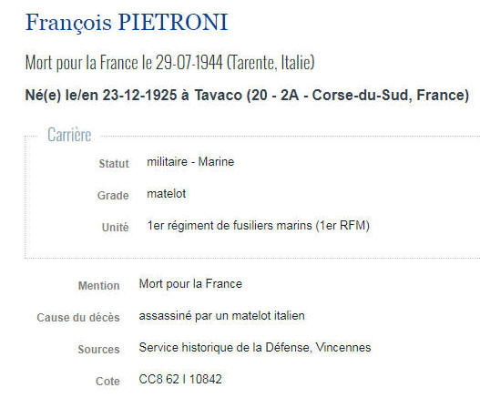 Né le 23 décembre 1925 à TAVACO (Corse du Sud) - Décédé le 29