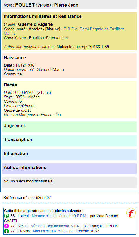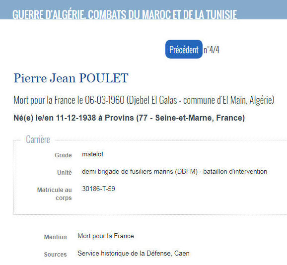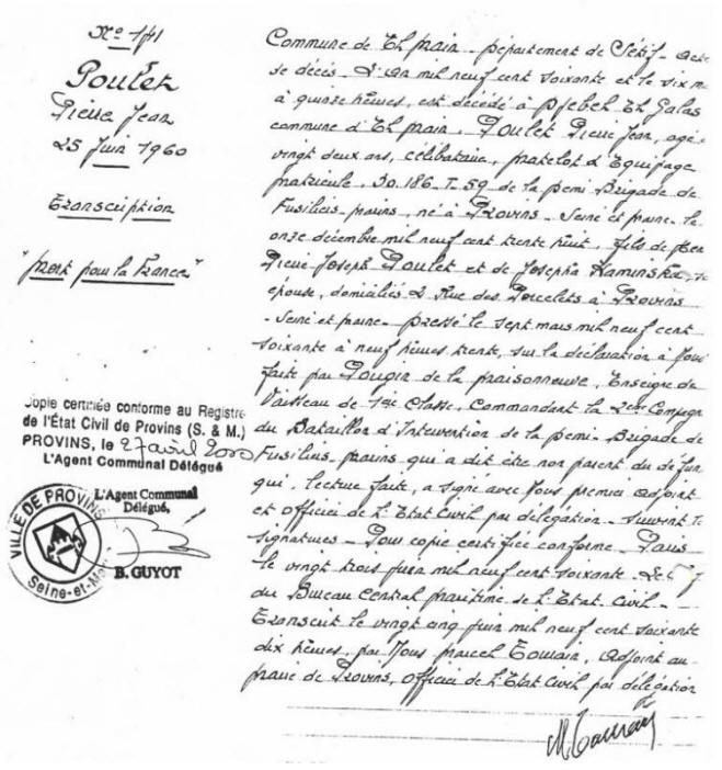à PROVINS (Seine et Marne) - Décédé le 6 mars 1960 à DJEBEL EL GALAS