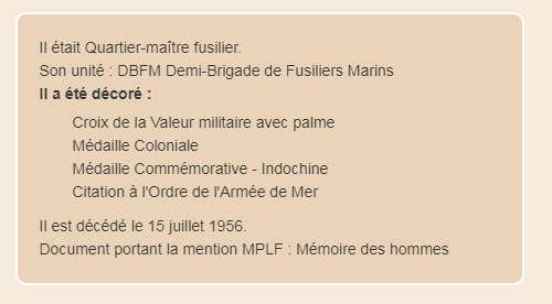 Un cours porte son nom à l'Ecole des Fusiliers marins du 15