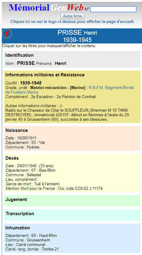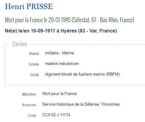 à HYERES (Var) - Décédé le 29 janvier 1945 à SELESTAT (Bas-Rhin)