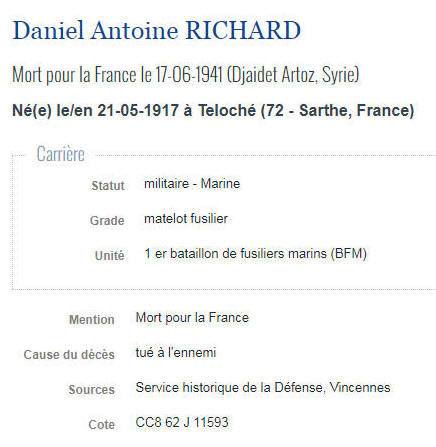 Né le 21 mai 1917 à TELOCHE (Sarthe) - Décédé le 17 juin 1941 à
