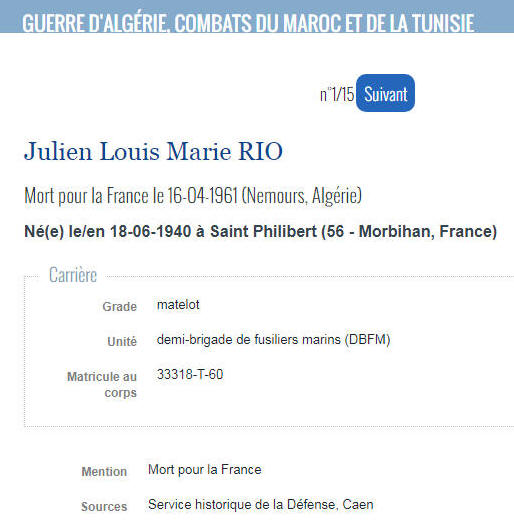SAINT PHILIBERT (Morbihan) - Décédé le 16 avril 1961 à NEMOURS