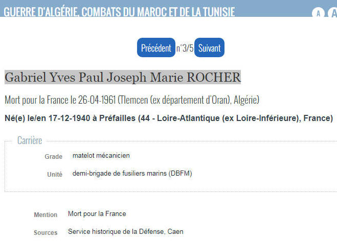 à PREFAILLES (Loire Atlantique) - Décédé le 26 avril 1961 à TLEMCEN