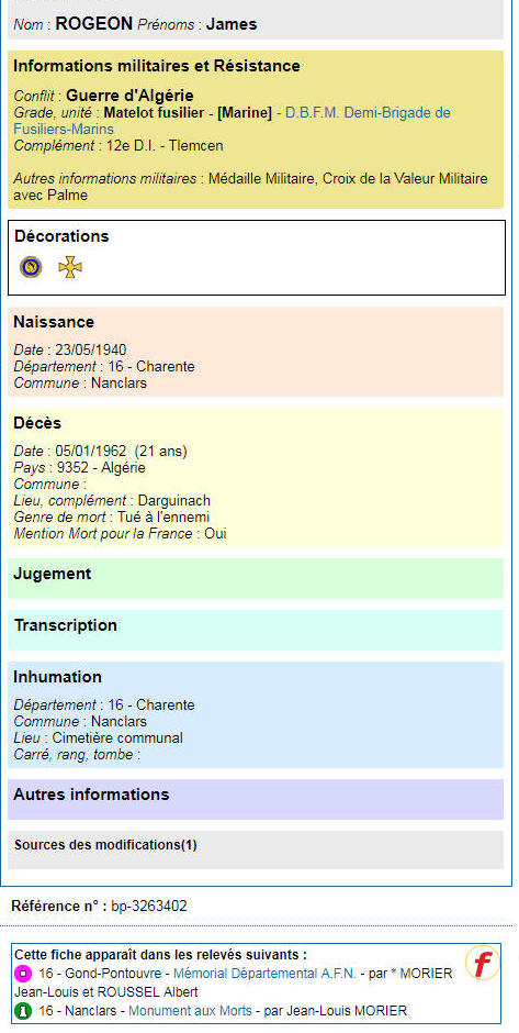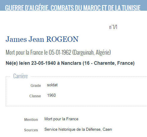 NANCLARS (Charente) - Décédé le 5 janvier 1962 à DARGUINAH (Algérie)
