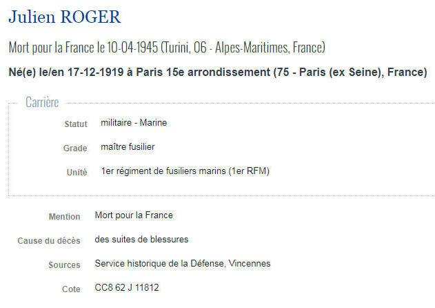 Né le 17 décembre 1919 à PARIS (Seine) - Décédé le 10 avril 1945 à