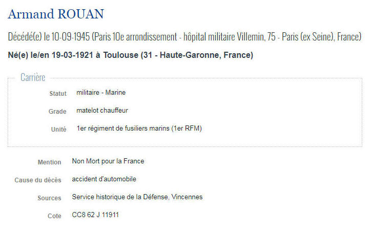 Né le 19 mars 1921 à TOULOUSE (Haute Garonne) - Décédé le 10