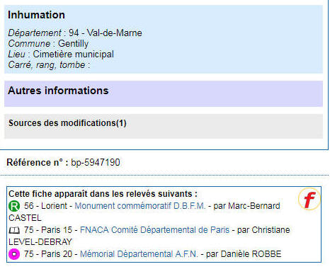 Inhumé au cimetière de Gentilly (Val de Marne)
