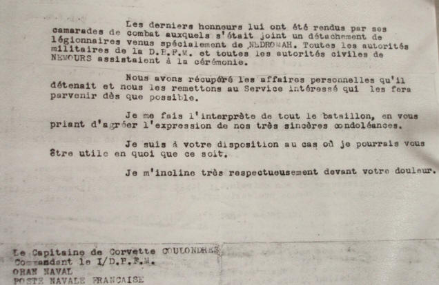 Son nom fut donné à un cours de l'Ecole des Fusiliers Marins du 9