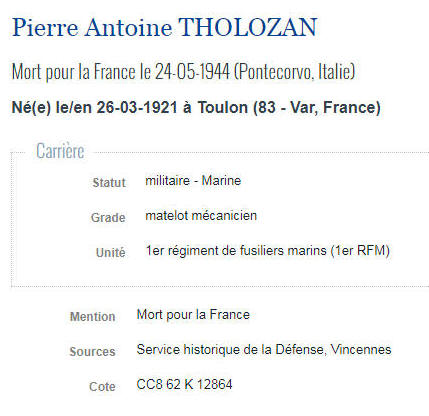 Né le 26 mars 1921 à TOULON (Var) - Décédé le 24 mai 1944 à