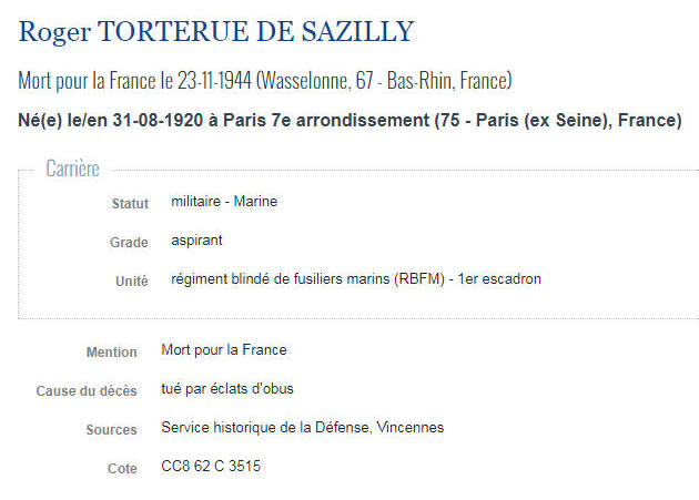 Sazilly sera décapité par un coup de panzerfaust le 23 novembre 1944