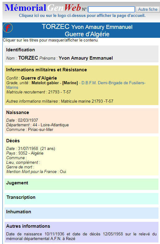 PIRIAC sur MER (Loire Atlantique) - Décédé le 31 juillet 1958 à