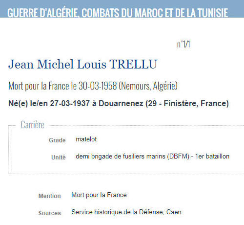 DOUARNENEZ (Finistère) - Décédé le 30 mars 1958 à NEMOURS