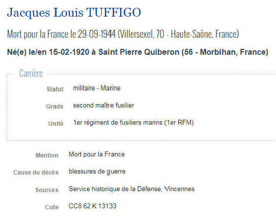 Remerciements Famille Tuffigo / Musée Fusiliers Marins