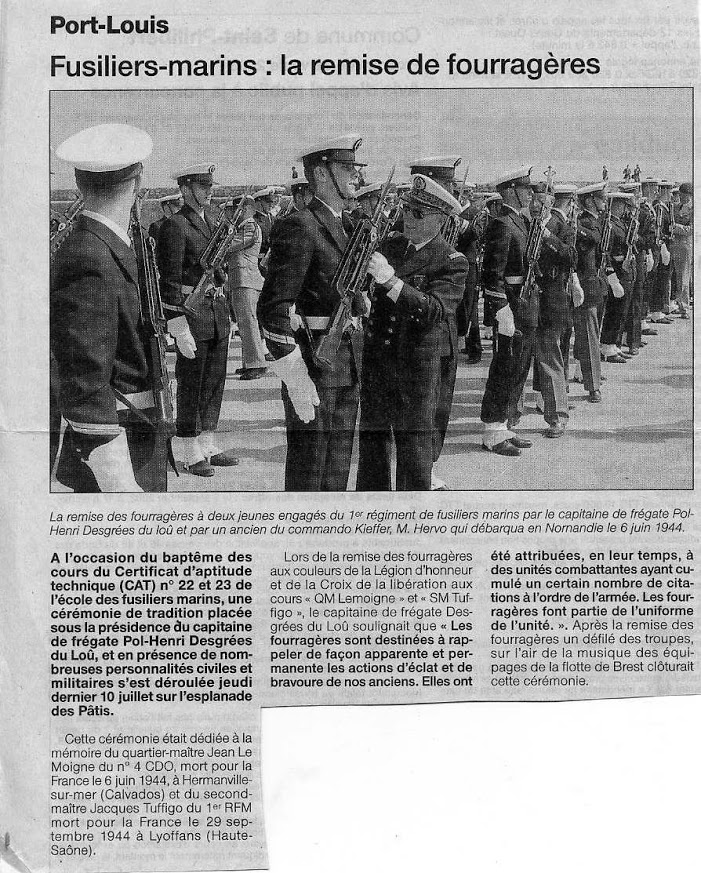 Un cours porte son nom à l'Ecole des fusiliers marins de Lorient, du
