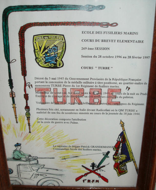 Un cours porte son nom à l'Ecole des fusiliers marins de Lorient, du