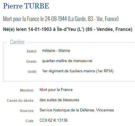 A noter que Pierre TURBE fut blessé gravement le 22 août mais décède
