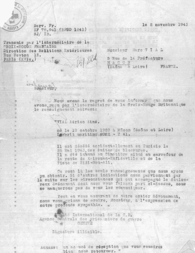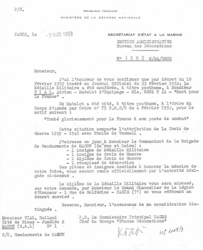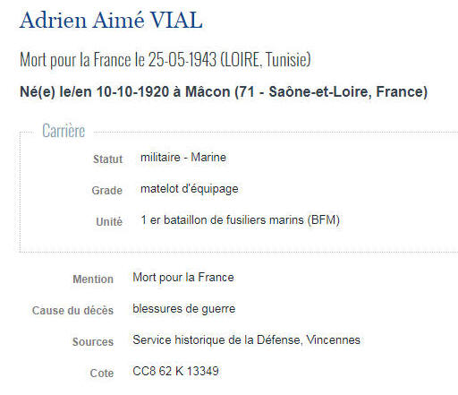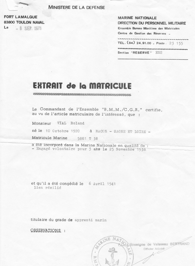 Dossier sans homologation mais 2e dossier GR 16 P 591871 pour VIAL,