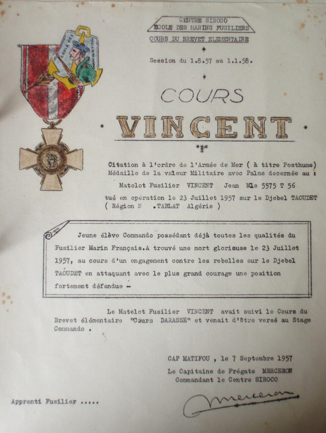 à l'Ecole des Fusiliers Marins du 1er août 1957 au 1er janvier 1958
